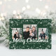 Traga um toque de elegância festiva para sua mala de férias com este cartão-postal verde e branco floco de neve, com três fotos na frente e uma na parte de trás. O rico fundo verde e os intrincados flocos de neve brancos criam um visual clássico de feriado que combina maravilhosamente com suas fotos tesouras. Este postal oferece uma na moda e uma maneira simples de enviar desejos calorosos, combinando a beleza da estação com a alegria dos momentos pessoais. É uma maneira perfeita de compartilhar seu espírito de feriado e criar uma impressão duradoura em cada receptor.