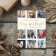 Cartão de Cartões de natal simples e moderno. A feliz e o texto brilhante estão em folha de ouro falso, com 9 modelo de colocação de fotos. Personalize com suas informações exclusivas.