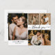Elegante, Na moda, Colagem de Fotos de Casamento 4. Obrigado postal. Modelo de cartões de agradecimentos de casamento minimalista com quatro fotos na frente e uma foto na parte de trás. Com o texto "Obrigado" em uma letra de script tipografia escrita, escrita à mão, com haste ou a preto sobre fundo branco. Adicione seu nome personalizado e sua mensagem de obrigado. Se preferir escrever manualmente a sua nota, basta eliminar o texto de amostra para obter mais espaço. Se você precisar de ajuda ou item correspondente, entre em contato comigo!