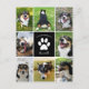 Este belo cartão postal memorial de cachorro personalizado é personalizado com fotos e memórias adoráveis do seu doce cachorro. Personalize este presente de condolências atencioso com suas próprias 8 fotografias de animais de estimação em torno de um quadrado preto com uma bela impressão de pata branca e o nome do seu cachorro no centro para expressar sua simpatia. Um design de lembrança sofisticado para alguém que perdeu seu amado cachorro.
