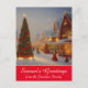 Saudações da temporada! Um design de estilo "chintzy vintage" com árvores de Natal numa pequena vila de neve, com pessoas locais a comprar e a divertir-se. Sinta-se à vontade para personalizar a saudação principal e (claro) o seu próprio nome familiar.