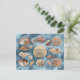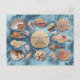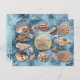 Esta é uma composição de vários conchas marinhas sobre fundo de coral azul.