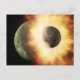 Este conceito do artista mostra um corpo celeste do tamanho da nossa lua colidindo em alta velocidade com um corpo do tamanho de Mercúrio. O Telescópio Espacial Spitzer da NASA encontrou evidências de que uma colisão de alta velocidade desse tipo ocorreu há alguns milhares de anos em torno de uma estrela jovem, chamada HD 172555, ainda nos estágios iniciais de formação de planetas. A estrela está a cerca de 100 anos-luz da Terra. Imagem cedida por: NASA/JPL-Caltech