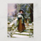 Uma bela cena vitoriana de inverno com a jovem mulher e seu cão collie.