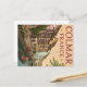 poster vintage de Colmar, França. Mostre casas encantadoras e meio-calçadas que guardam um canal, caixas de janela cheias de flores, e um pequeno barco flutuando na água. Use tons pastéis quentes: pintas macios, amarelos e verdes terríveis. Título: