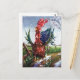 Cartão Postal Colorful Rooster in Spring Rain Art Postcard
