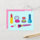 Esta brilhante e colorida ilustração de maquiagem apresenta uma variedade de cosméticos bonitos como batom vermelho, esmalte azul de unhas, pincel laranja e verde limão e uma pincel rosa quente e uma pincel roxa bonito! Esta arte de maquilhagem cosmetológica é o presente perfeito para um comprar para um cosmetólogo, maquiador, estudante de beleza ou qualquer pessoa que ama cores neon brilhantes dos anos 80 e cores originais divertidas!