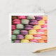 Estes doces doces à base de merengue franceses estão cheios de um centro saboroso para criar um delicioso sanduíche de biscoitos. Este arco-íris empilhado de cores significa diferentes gostos! Cartão-postal de Cookies Macaron Franceses Coloridos