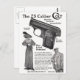 Anúncio preto e branco Vintage 1912 de um pote calibre 25. Mostra uma mulher e um homem a puxar uma na bolsa ou na casaco. Diz "hambúrgueres, faíscas sólidas, automaticamente seguras". Acima de um parágrafo de explicação diz "Aqui está uma verdadeira proteção".