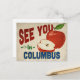 Um charmoso cartão-postal antigo de Columbus Ohio com uma linda maçã vermelha, juntamente com um divertido texto retrô que diz, "Vejo você em Columbus"