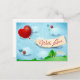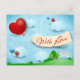 Balão em forma de coração e mensagem voando sobre o campo, arte digital