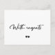 Expresse o seu pesar por estar em posição de cancelar ou adiar seu casamento, evento, festa ou celebração, e a esperança de reagendá-lo o mais rapidamente possível com este simples, elegante e moderno cartão postal de tipografia "Com arrependimentos" com dois pequenos corações. +++++++++++++ Fácil de personalizar com o seu texto em ambos os lados. ++++++++++++++ Se quiser que o título ou o layout do design seja modificado, por favor, envie-me uma mensagem!