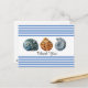 Este cartão postal estilo Praia apresenta três conchas marinhas em um fundo listrado azul e branco. Há um espaço para uma saudação. Compre como mostrado com a saudação de agradecimento ou adicione seu próprio texto, como "Salve a Data" ou "Feliz Aniversário". A escolha é sua. Há uma saudação no verso que pode ser personalizada com suas próprias palavras.