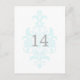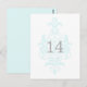 Moderno com elegância quic descreve este sofisticado Número de Tabela de Casamentos tema damasco Sutil Cartão postal com um fundo turquesa leve turquesa úmido florescente. Este cartão clássico de mesa é perfeito para um casamento tradicional e pode ser facilmente personalizado com um número ou números de tabela ou detalhes do seu casamento. Para obter mais opções de personalização, clique no botão Personalizar Ti.