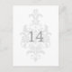 Moderno com elegância chic descreve este sofisticado número postal de tabela de Casamento tema damasco sutil com um fundo florescente de cinza de luz. Este cartão clássico de mesa é perfeito para um casamento tradicional e pode ser facilmente personalizado com um número ou números de tabela ou detalhes do seu casamento. Para obter mais opções de personalização, clique no botão Personalizar Ti.
