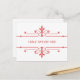 Cartão postal em vermelho e branco, com um Rico simples e elegante, com uma sofisticada borda decorativa do estilo de arte. Fácil de personalizar, basta adicionar o(s) número(s) de tabela apropriado(s) no campo de texto fornecido. Clique em "Personalizar" para encontrar mais opções de personalização.