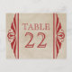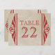 Na moda e chic Elegant Deco Wedding Table Number Cartão postal com um par de espiral de arte deco floresce em vermelho escuro e uma imagem de fundo texturizada em um bege suave. Este cartão de mesa tem charme rústico enquanto mantém um belo talento sofisticado. Absolutamente perfeito para o casamento temático vintage de 1920. Fácil de personalizar, basta adicionar o(s) número(s) de tabela apropriado(s) no campo de texto fornecido. Clique em "Personalizar" para encontrar opções adicionais de personalização.
