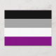 Cartão postal com bandeira de assexualidade com faixas arco-íris de preto, cinza, branco e roxo; design de orgulho de ás