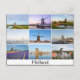 Cartão postal com uma colagem de 9 moinhos de vento na Holanda em várias estações, com bolbos de flores em primavera, neve no inverno em Kinderdijk e flores de dália no verão. Um cartão de lembrança de excelente dos Países Baixos, com o texto "Holland".