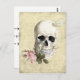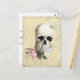 Um crânio, com uma rosa entre os dentes e uma borboleta, deitado sobre um fundo de um depoimento manuscrito dos julgamentos da Bruxa de Salem. © Wickely Lovely