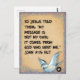 Um cartão postal contendo o versículo bíblico João 7:16 NLT: "Então Jesus disse-lhes: 'Minha mensagem não é minha; ela vem de Deus que me enviou.'" Este prático cartão de memória pode ser facilmente carregado em uma carteira, fixado em um quadro de avisos ou colocado em uma mesa de cabeceira, proporcionando encorajamento e conforto ao longo do dia.