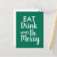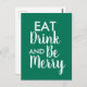 Cartão Postal Coma, Beba & Seja Alegre Citação de Natal em Verde