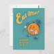 estilo retro-vintage de citros com uma laranja feliz em um chapéu e, coma-me! para saúde, para sabor, para diversão! texto.