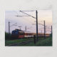 Comboio pequeno, local, elétrico ao anoitecer na Bulgária.