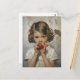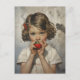 A pintura retrata uma jovem alegre com cabelo castanho encaracolado e olhos azuis brilhantes. Ela está comendo alegremente um morango maduro, vermelho, suas mãos gordinhas segurando-o com cuidado. Seu rosto é cheio de prazer e inocência.
