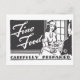 Anúncio preto e branco do início do 20. "Comida fina cuidadosamente preparada" Com um homem e uma mulher sentados numa mesa