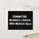 A melhor maneira de NÃO fazer alguma coisa é formar um comitê para o fazer. Se você ficar preso a um, aqui está uma maneira de dar a sua opinião a saber: "Comitê: Vida sem cérebro com múltiplos Egos." Excelente para reuniões também ou coloque no seu carro para que todos saibam que você odeia perder seu tempo.