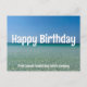 Este belo cartão postal de aniversário feliz da praia é feito por costume com o nome da sua companhia costeira sobre as ondas bonito do oceano. Cartões postais de aniversário de negócios para marketing a clientes passados e atuais colegas corporativos. Escrita branca moderna ao longo do horizonte da costa. Script azul personalizado no verso.