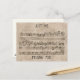 Composição musical clássica e elegante barroca manuscrita por Johann Sebastian Bach. Excelente para amantes de música. No verso, um texto editável muito pequeno que divide o endereço da área de mensagens do cartão postal indica "1700 anos de fúria manuscrita pelo compositor alemão Bach" e uma nota musical adaptada a partir da composição aparece na área de carimbo postal.