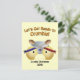 Personalize este cartão postal para o evento de assar. A design apresenta uma casal de personagens engraçadas e com aparência feroz viradas para fora em frente a uma tigela misturada e colheres de madeira cruzadas sob uma imagem de texto arquivado lendo "Vamos se prepara para se desmoronar!"