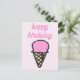 NewParkLane - Cartão postal, com um cone de sorvete fofo e uma citação 'Feliz Aniversário' em uma tipografia de script rosa quente divertida, contra um fundo rosa suave.
