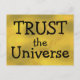 Este é um belo cartão postal de "ouro" com o ditado "CONFIAR no Universo" escrito em letras pretas ENORMES! Excelente de enviar um para todos na família!