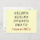 Eu conheço o papel e o design de texto alinhados do meu ABC com a impressão em estilo infantil que contém todo o alfabeto em letras maiúsculas e texto vermelho que diz "Eu conheço o meu ABC!".