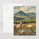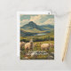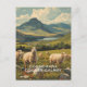 Cartaz charmoso de Connemara, com ovelhas pastoreadas em colinas verdes e peludas, com paisagens rolantes esticadas sob um céu amplo e aberto.