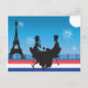 Uma silhueta de um vinho casal romântico contra um pano de fundo da Torre Eiffel em Paris. Os fogos de artifício estão a explodir no céu. As cores da bandeira francesa estão na parte inferior. Personalize este produto com um nome ou mensagem para torná-lo verdadeiramente exclusivo