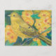 Amantes de pássaros vão tesourar este cartão-postal de pintura aquosa amarelo-warbler em um jardim de rosas amarelas pastel. As cores desbotadas e suaves de amarelo e verde criam um estilo stabby e chic com um flare antigo. Jardineiros, observadores de pássaros e fãs da natureza apreciarão o vislumbre artístico do sabiá-lo em um cenário realista.