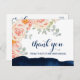 Cartão Postal Cor-de-água rosa e Marinho floral Obrigado