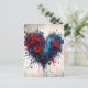Cartão Postal Coração Azul Enroscado com Flores Vermelhas