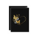 Dourada estrutura em forma de coração, decorada com ouro, joias e borboletas brancas sobre fundo preto.