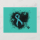Cartão Postal Coração do Téal Ribbon Grunge