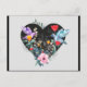 Ilustração em aquarela apresentando uma forma de coração preto preenchida com uma variedade de flores e dois beija-flores. As flores incluem flores cor-de-rosa, vermelhas e amarelas, complementadas por folhagens verdes e cinzas. Um beija-flor é colorido em tons de roxo, enquanto o outro é azul. A obra de arte é apresentada contra um fundo branco. O estilo é reminiscente de técnicas delicadas de pintura em aquarela, com cores suaves e difusas e detalhes intrincados.
