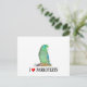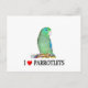 Um parrotlet espetacular é mostrado com o texto "I Heart Parrotlets" neste cartão postal fofo
