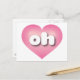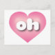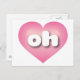 Este cartão-postal apresenta um coração cor-de-rosa com um centro lavado em branco contendo as letras maiúsculas brancas arredondadas oh, uma abreviação lúdica para Ohio, o estado do olho-de-boi. O reverso do cartão postal é vazio, aguardando seus sentimentos manuscritos ou texto personalizado.