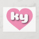 Este cartão-postal apresenta um coração cor-de-rosa vibrante contendo as letras maiúsculas, brancas, em negrito, arredondadas, uma abreviação lúdica para Kentucky, o estado de bluegrass. O verso do cartão postal é vazio aguardando seus sentimentos manuscritos ou texto personalizado.