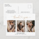 Cartão postal de agradecimento de bebê de 3 fotos com o Simple Gold Heart Script - uma maneira doce de agradecer a familiares e amigos por toda a gentileza e apoio ao dar as boas-vindas ao seu novo bebê em sua nova família. A caligrafia manuscrita doce em folha de ouro falso tem as palavras unidas com um coração e 3 fotos favoritas do bebê, junto com o nome do bebê, data de nascimento e estatísticas de nascimento. O verso inclui sua mensagem pessoal de agradecimento e nomes, que podem ser removidos se preferir escrever seu agradecimento à mão. Entre em contato com o designer para produtos correspondentes. Copyright Anastasia Surridge, todos os direitos reservados.