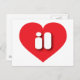 Este cartão postal apresenta um coração vermelho vibrante contendo as letras maiúsculas azuis, brancas e arredondadas il, uma abreviação lúdica para Illinois, o estado prairie. O reverso do cartão postal é vazio, aguardando seu texto personalizado ou sentimentos escritos à mão.